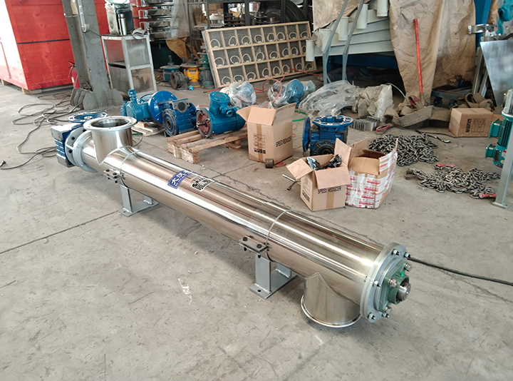 螺旋輸送機(jī)一般分為有軸螺旋輸送機(jī)、無軸螺旋輸送機(jī)兩種。有軸螺旋輸送機(jī)由螺桿、U型槽蓋板、進(jìn)、出料口和驅(qū)動(dòng)裝置組成,而無軸螺旋輸送機(jī)則把螺桿改為無軸螺旋,并在U型槽內(nèi)裝置有可換襯體,結(jié)構(gòu)簡單。物料由進(jìn)口輸入,經(jīng)螺旋推動(dòng)后由出口輸出,整個(gè)過程可在一個(gè)密封的槽中進(jìn)行,降低了噪聲,減少了異味的排出。由于設(shè)備中沒有高速運(yùn)轉(zhuǎn)零件,因此螺桿磨損低,設(shè)備能耗低,幾乎不需要維修。