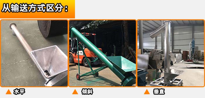 螺旋輸送機從輸送方式上可以分為:水平輸送,垂直輸送,以及傾斜輸送三種。