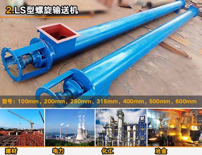 型號:LS型螺旋輸送機以管徑為型號:100mm,200mm,250mm,315mm,400mm,500mm,600mm等型號。