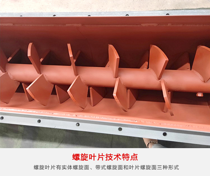 螺旋輸送機(jī)一般由輸送機(jī)本體、進(jìn)出料口及驅(qū)動(dòng)裝置三大部分組成;螺旋輸送機(jī)的螺旋葉片有實(shí)體螺旋面、帶式螺旋面和葉片螺旋面三種形式,其中,葉片式螺旋面應(yīng)用相對(duì)較少,主要用于輸送粘度較大和可壓縮性物料,這種螺懸面型,在完成輸送作業(yè)過(guò)程中,同時(shí)具有并完成對(duì)物料的攪拌、混合等功能。