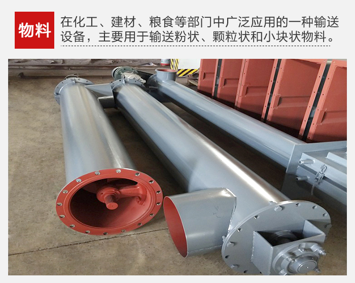 1、螺旋輸送機(jī)是在化工、建材、糧食等部門中廣泛應(yīng)用的一種輸送設(shè)備,主要用于輸送粉狀、顆粒狀和小塊狀物料。它不適宜輸送易變質(zhì)的、粘性的和易結(jié)塊的物料。