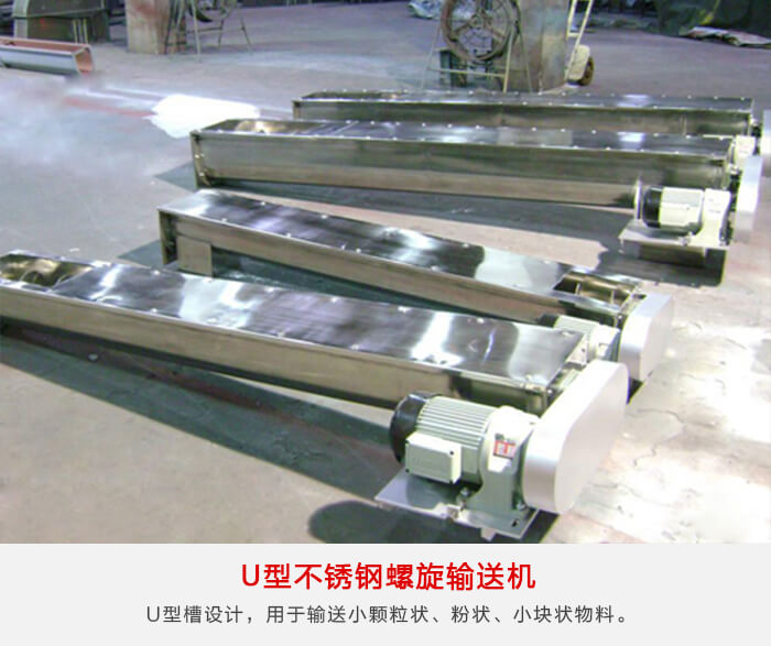 為U型槽設(shè)計,用于輸送小顆粒狀、粉狀、小塊狀物料。不適宜輸送易變質(zhì)、黏性較大易結(jié)塊以及含水量較大的物料,每小時輸送量在9-134噸之間,U型不銹鋼螺旋輸送機(jī)具有密封性好、承載轉(zhuǎn)距大、噪音低、不滲油等顯著特點。