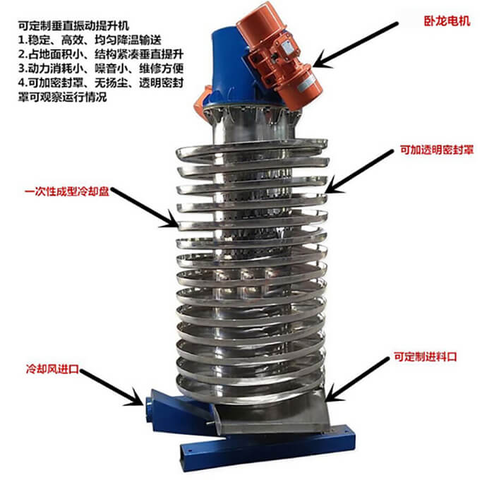 垂直振動螺旋提升機又叫振動螺旋提升機、垂直螺旋提升機、振動垂直提升機等。振動垂直螺旋提升機是一種新型的垂直振動輸送設(shè)備,該設(shè)備具有蜂窩式底座,全新內(nèi)管支撐系統(tǒng)本機對一切顆粒狀、塊狀、粉狀的固體物料都可以輸送。