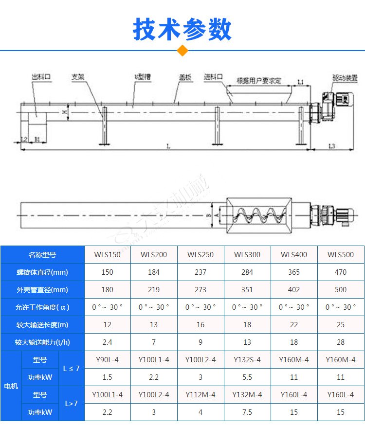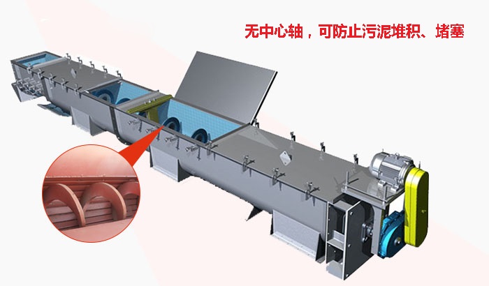 2、單臺(tái)輸送機(jī)的輸送長度可達(dá)60米,輸送量是相同直徑有軸輸送機(jī)的1.5倍。