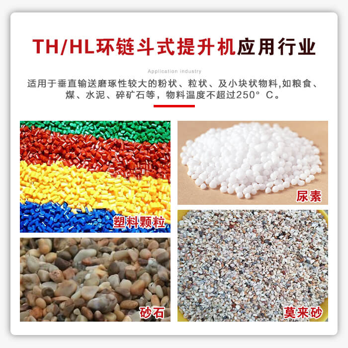 應用行業:適用于垂直輸送磨琢性較大的粉狀、粒狀、及小塊狀物料,如糧食、煤、水泥、碎礦石等,物料溫度不超過250°C。
